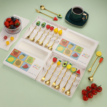 Juego de regalo para el Día de los niños-Vajilla de frutas de dibujos animados de acero inoxidable Incluye tenedor y cucharas de postre de pastel de muñeca