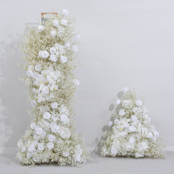Tanaman bunga buatan dekorasi dinding baris panjang berbintang untuk dekorasi meja bola Panel lengkung pernikahan pertunangan dansa ulang tahun