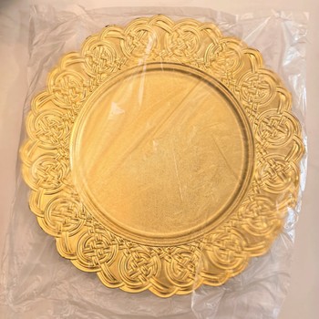 Piring pengisi daya plastik pernikahan kerajinan elektroplating emas pesta dekoratif